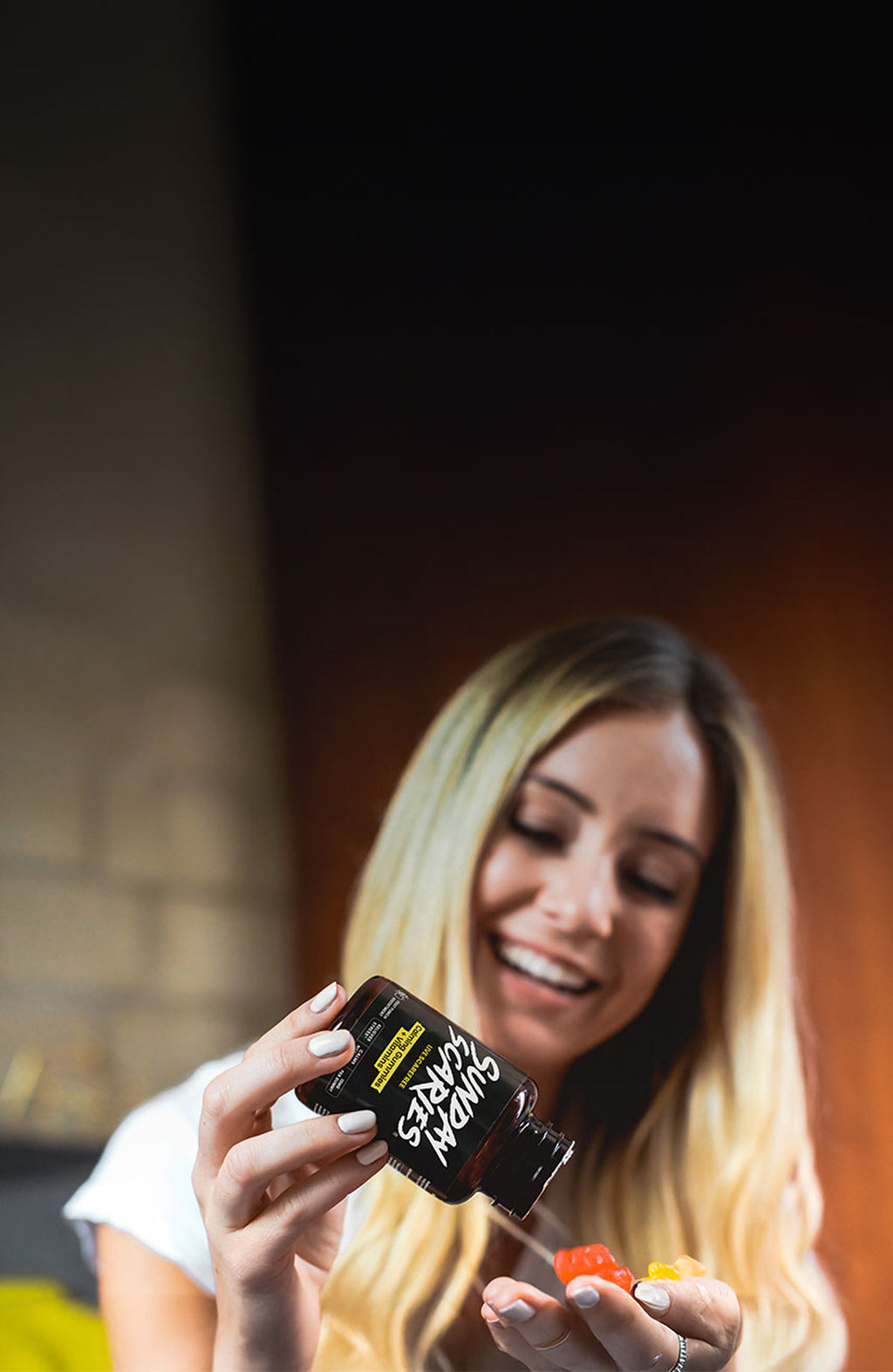 "I take Sunday Scaries because I've had ptsd, anxiety and depression from a traumatic incident recently. The gummies takes the edge off when I'm feeling anxious after a long day at work or nervous before a court date. In addition, the sleep tincture REALLY helps with my sleep. They're my ultimate self care."